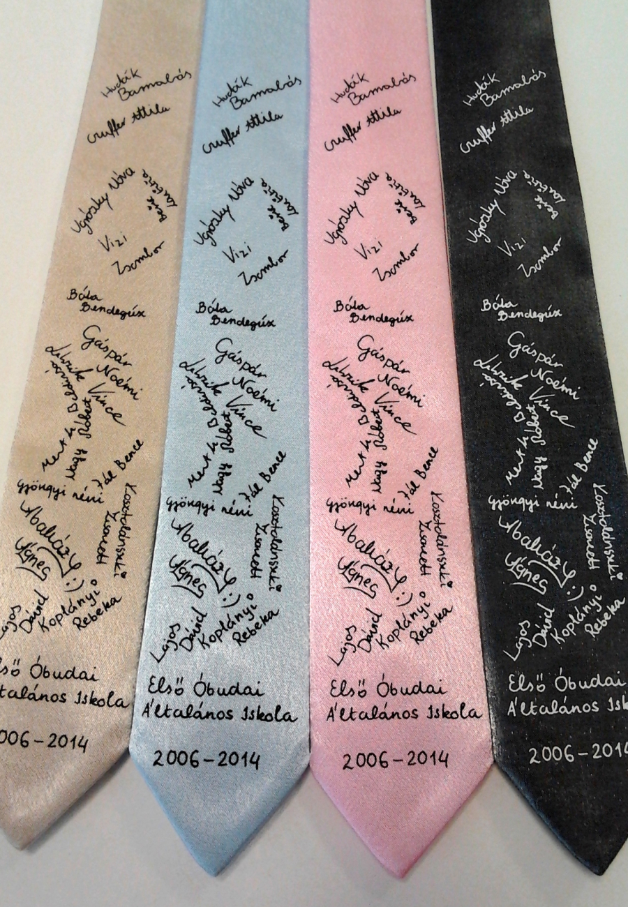 Osztálynévsoros nyakkendők esetében lehetőség van kézzel írott névsor elkészítésére. Ez esetben sablont küldünk, amelybe a gyermekek fekete tűfilccel tudják beleírni a nevüket.